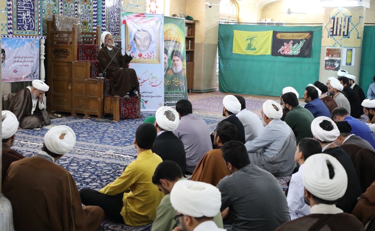حوزه علمیه استان یزد/ صبح امروز یکشنبه ۶ مهرماه ١۴٠۴ مراسم سالگرد شهادت سید حسن نصرالله و همرزمان شهیدش یا حضور حجتالاسلام والمسلمین ایمانی از همرزمان شهید سید حسن نصرالله در مدرسه علمیه مصلی یزد برگزار شد.